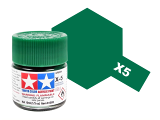 Tamiya Acrylic Mini X-5 Green 10ml Paint Made from water-soluble acrylic resins and are excellent..
